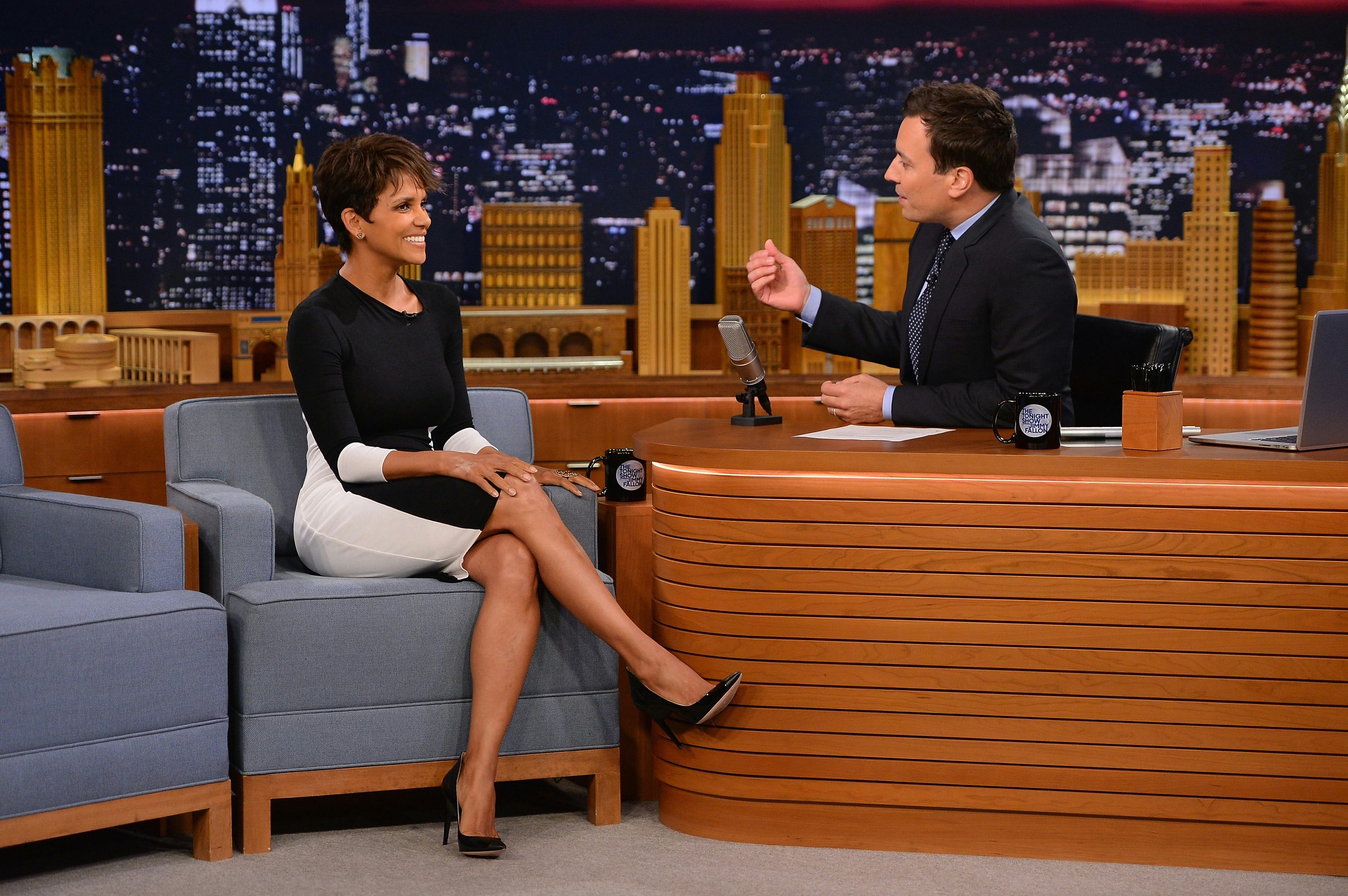 However, now that the series is making its debut, Berry is on the press circuit making sure Hollywood knows she is back and better than ever. This of course includes a killer new wardrobe, which she exhibited during an appearance on The Tonight Show Starring Jimmy Fallon. Dressed to impress in a fitted, long-sleeve sheath frock with matching black patent pumps, the actress looks like she hasn't aged a day since appearing in her first film. Her classic pixie cut and an ear cuff as a cheeky accessory simply added to the modernity of the ensemble. So instead of reaching for bland pantsuit or beige shift the next time you're gearing up for an important interview, try rocking black and white with an idiosyncratic edge like Berry. Simply add on a beaming smile, and you may be mistaken for one of Hollywood's most archetypal powerhouses.