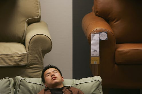 We've all felt it. After wandering around from showroom to showroom, arguing the merits of a particular style of bookcase to a partner, you just want to lie down. Relax. Close your eyes. Well, in China, they're doing just that: Chinese shoppers are literally napping on IKEA furniture — and I'm talking a shoes-off-pillow-over-face-potential-drooling-situation kinda nap. The best part? IKEA's welcoming it with open arms. Oh, IKEA. We always knew you were wonderful.