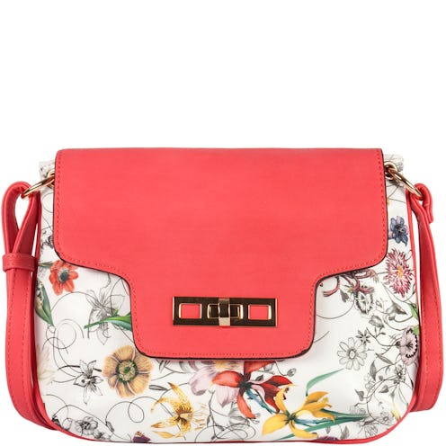 If a subtle floral look is more what you're going for, this small messenger bag is perfect. The coral accents are bold, but the floral print resembles a black and white sketch sparingly filled in with watercolor paint. ($28.01, handbagheaven.com)