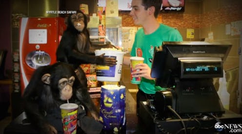 I honestly don't know what to think about this. On one hand, oh, my God, two chimps accompanied their human counterparts to watch Dawn of the Planet of the Apes in a movie theater, that's adorable. On the other hand, it's crazy and something I never thought I would actually be writing about, so I'm just a little stunned right now. Regardless, it's a great story: According to ABC News, two chimps from the Myrtle Beach Safari in South Carolina were treated to a night at the movies by their human buddies so they, like everyone else in the world, could see Dawn of the Planet of the Apes in a movie theater.