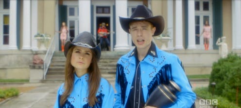 Halloween shop-esque powder blue cowboy outfits, fringe dresses and jackets, and a princess dress with a pearl choker? They really know how to evoke a southern feel.