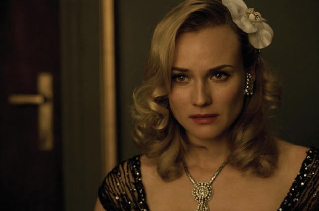 And now we have the best Nazi-exploding outfit to date. Apparently, Shosanna was originally supposed to appear at her big night in a LBD, but Tarantino and costume designer Anna Sheppard quickly decided that she needed something more show-stopping... and this floor-dusting red gown is nothing if not show-stopping.