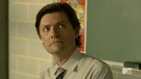 Here's what we know. Creepy disease man — whom you may recognize as Dwight's best friend Rolf from The Office —is named Simon and he seems to work at a lab that specializes in weaponizing diseases. The first time we see him is in his lab, ignoring a dying werewolf, and drinking tea that will inoculate him from the virus he later releases at the high school. Simon then shows up at Beacon Hills High as the PSAT exam proctor where Malia, Scott, Stiles, and Kira are taking the exam. When the disease is discovered and the students are waiting for the CDC to arrive, Simon proceeds to scare Stiles by telling him his phone won't work and that the mystery disease — later revealed to be Canine Distemper — is not Smallpox.