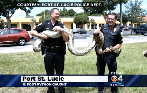 Holman needed some backup to catch the python, because seriously — it's huge snake that just killed someone's perfectly nice cat. "Once I saw the size of it, I called for a few more officers," Holman told local news station WPBF. "I'm not going to do that by myself."