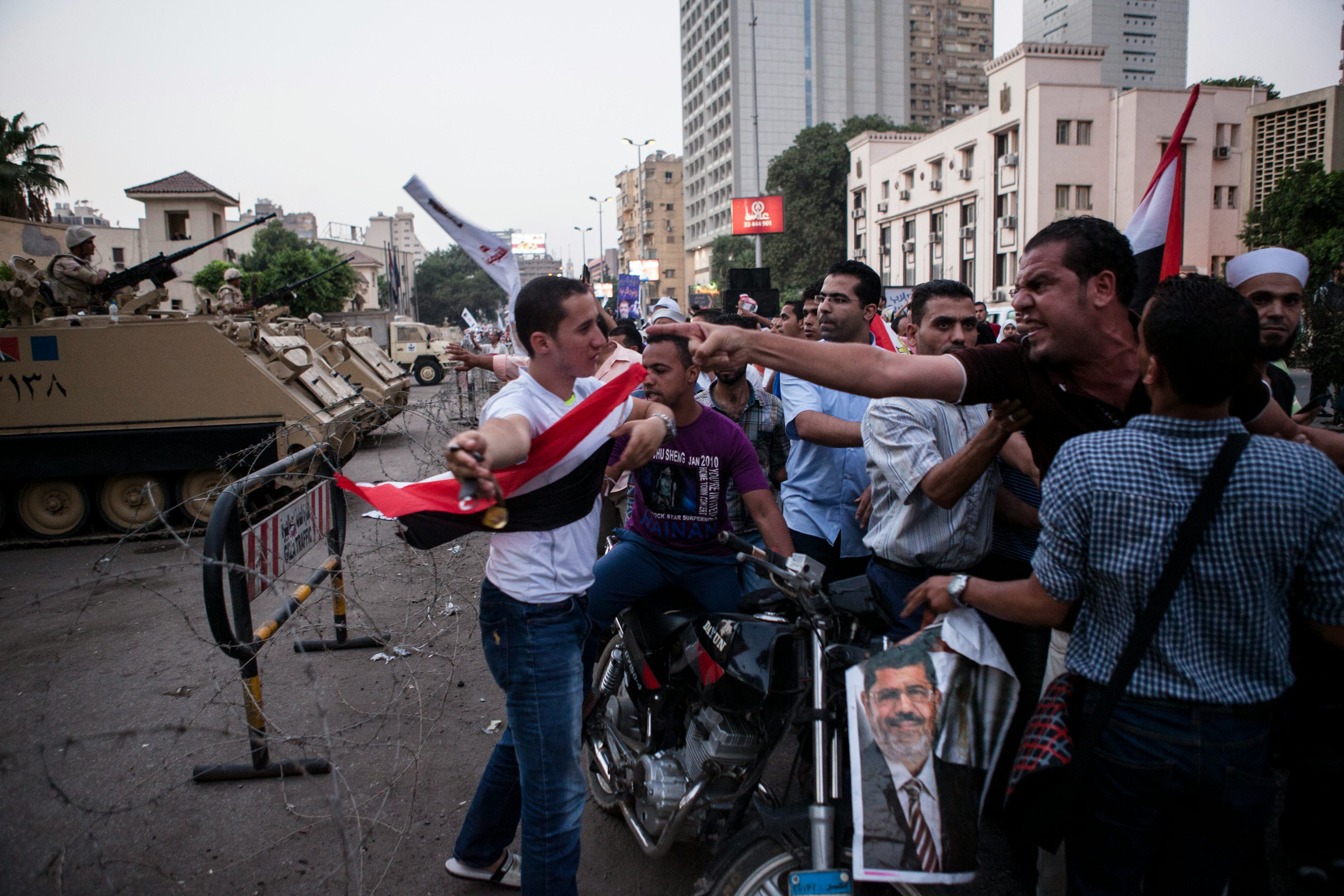 Amidst the upheaval, police fired tear gas in other parts of Cairo to keep additional Morsi supporters from approaching the encampments and aiding the protestors. Egyptian authorities said that they would deal harshly with any protesters deemed to be behaving "irresponsibly."