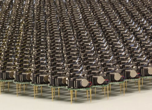 Inspired by the collective activity of the natural world (and apparently undeterred by every science fiction film, ever), Harvard researchers have created the world's largest army of robots, called Kilobots — 1,024 of them, in fact. These Kilobots are your basic futuristic nightmare: they work autonomously. They mimic the behavior of insects. They communicate with each other. They swarm and create shapes, without any human input. Yes, they're still at the primitive stage but let's not beat around the bush here: these are clearly the beings of the future and we should treat them with respect lest we be turned into future robot-slaves.