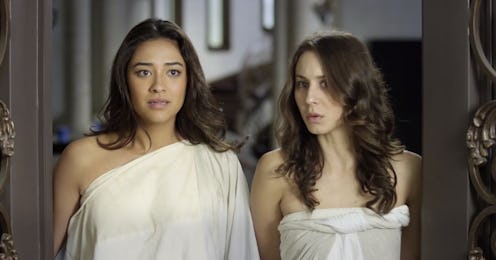 But if you thought that PLL could get dark (we're still waiting on that #FatalFinale) it's nothing compared to the stuff that goes down in this short. Immediately Afterlife is a creepy descent into the "what if" — what happens when two members of a cult survive the group's mass suicide? The film follows Marissa (Mitchell) and Bennett (Bellisario) immediately after waking up surrounded by the dead bodies of their fellow cult members. Marissa is happy to have survived the attempt — she was questioning the cult's teachings — but Bennett is devastated to find that she hasn't followed her beloved leader into the afterlife. The short consists of the dialogue between the two women as they attempt to figure out why they are still alive.