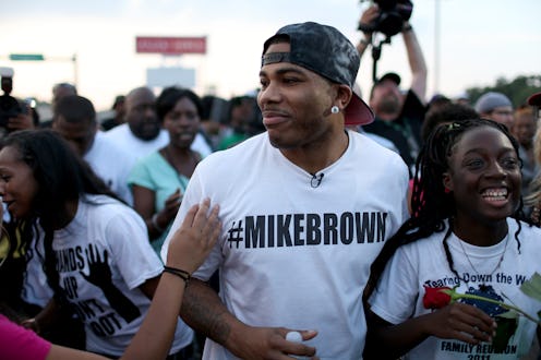 Last week, Nelly was under a lot of scrutiny for his perceived lack of support for his hometown. Since then, the 39-year-old rapper has shown that he's proud to come from St. Louis by organizing rallies in L.A. and actually getting on a plane to Ferguson. Now that he's in town, Nelly has been under even more scrutiny for his rally-chant "calling for a plan," especially in this particularly snarky Washington Post article. The piece compares Nelly to Jesse Williams, whose CNN address was "like Harry Belafonte" in eloquence. I agree that William's address was inspiring, but I'm not sure why that needs to be compared with Air Force Ones-on-the-ground activism.