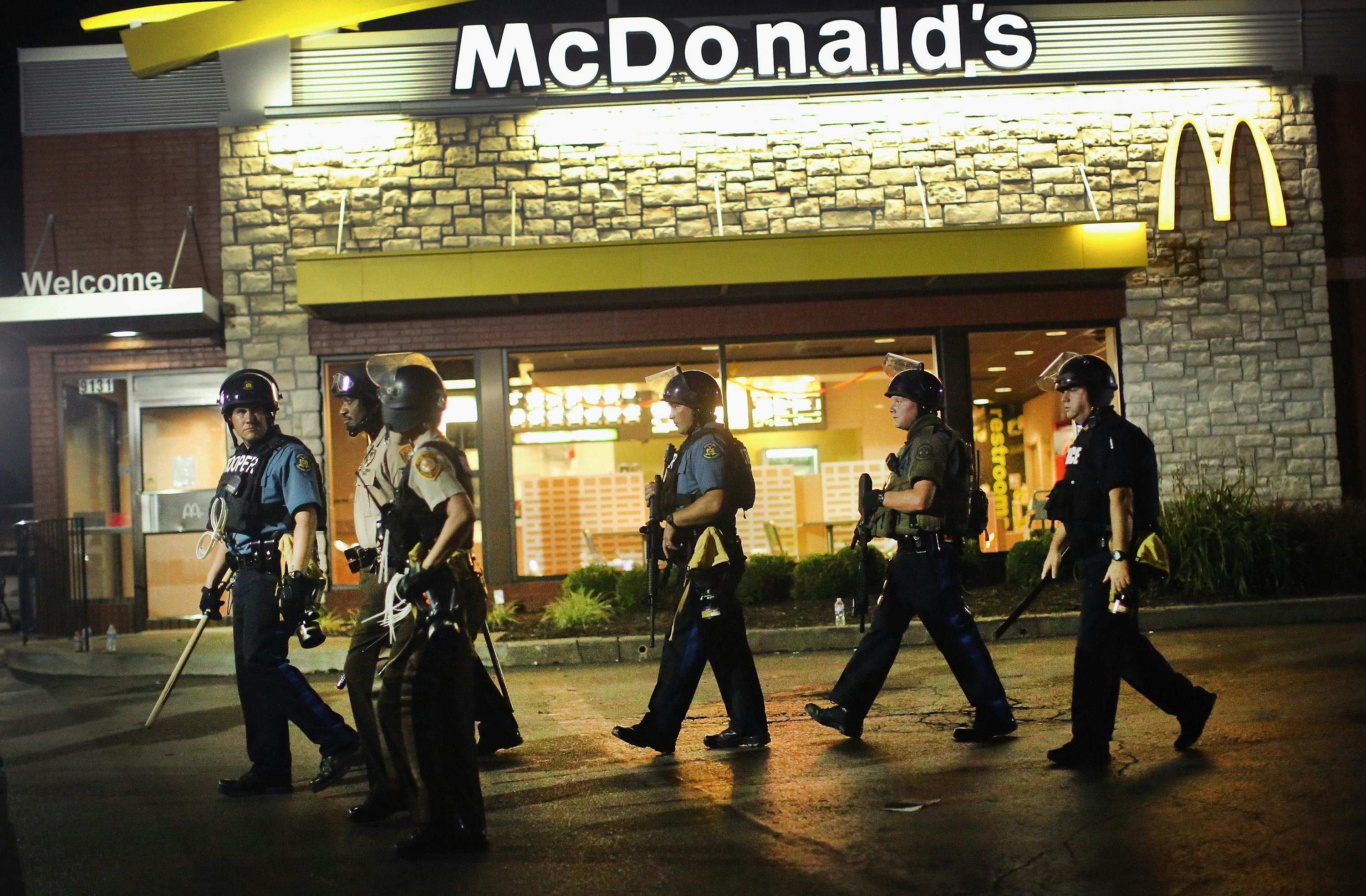However, it's still unclear how St. Louis County Police went off the armored deep end last week. The Missouri Department of Public Safety notes on its website that equipment from the 1033 program should only be used in counter-narcotics and counterterrorism operations — and it's (very) doubtful that the Ferguson protests qualified as the latter. The department also states the hardware can be used to "enhance officer safety," but that vague directive may not be enough to justify the use of military equipment against unarmed demonstrators.
