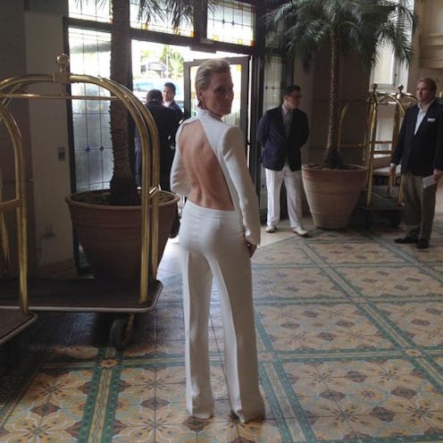 And not just any all-white jumpsuit, but a structured jumpsuit that shows off an almost-unimaginable amount of skin on its backside, thanks to the entirely open-back design. And can we just take a second to talk about said backside? I think even Claire Underwood would be proud.