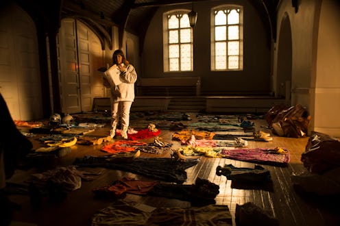 But even if the GR member won't talk, we know they're up to something. In the fourth episode of the season, the Guilty Remnant snuck into people's houses while most of the town was at the dance and all the family photos of The Departed. Then, in the eighth episode, GR leader Patti was seen compiling outfits in rows on the floor of Reverend Jamison's repossessed church, crosschecking with some sort of thick binder. Later in that same episode, a large delivery was brought to the same church, consisting of several large, wrapped packages. The promos for the Season 1 finale make it clear that whatever the GR is planning will come into play in a major way: there's blood, there's flames, and there's lots of dramatic music. But what exactly is the plan?