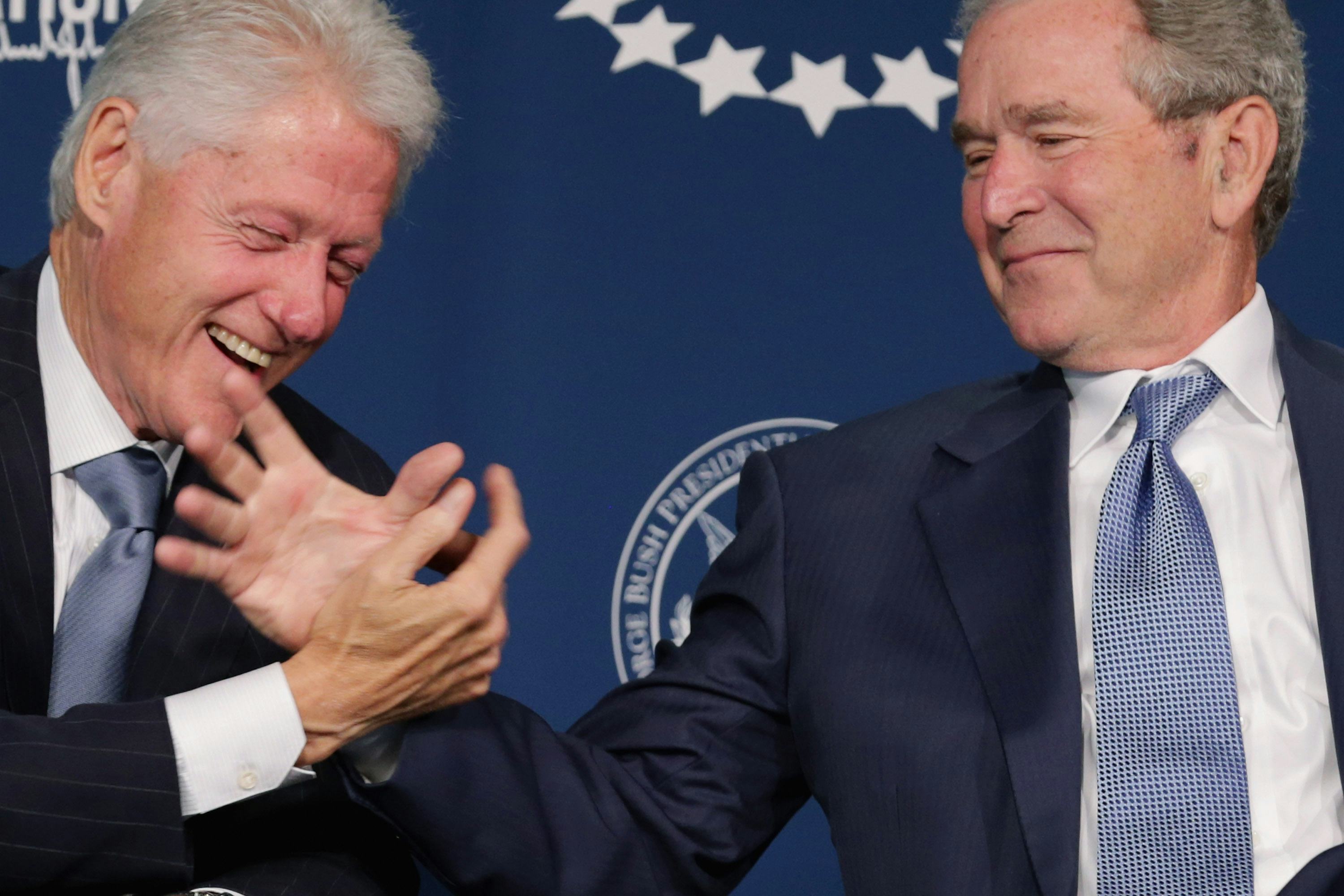For what it's worth, I can see the indignation coming with this one. And, to an extent, I understand — both Clinton and Bush were two-term presidents who presided over an awful lot of hard times, and are responsible for hardships in everyday people's lives, to varying extents. The Bush presidency in particular, with its multiple, poorly-executed foreign wars practically invites the reply: "What about the grandchildren of the Middle East!?"