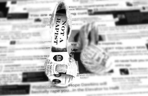 The exhibit, Roth writes on Skepchick, “is meant to put you, the viewer, in their shoes if only for a moment. See what it is like to be obsessively judged based on ‘fuck-ability,’ ‘rape-ability,’ as an object, or alternatively as what seems to be a target in a socially accepted (or otherwise ignored) game of online stalking, harassment, and silencing techniques.” It intends to dispel the beliefs that online spaces aren’t “real,” that this sort of harassment is “just words,” and that we should just brush it off, ignore it, or “grow a thicker skin.” And it doesn’t come a moment too soon.