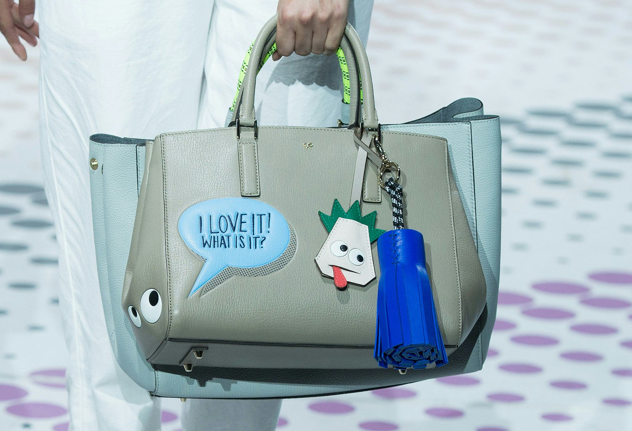 Remember Anya Hindmarch's adorable Mickey hands invitations? Turns out those had a little more than meets the eye: apparently, they're luxury stickers, designed to personalize everything from phones to leather handbags. In other words? Be still my heart. Being a recent grad and a fashion/beauty writer who spends a whole lot of time looking at really, really expensive clothing, I often find myself wishing I had more money — but few things have made me wish I had an extra $2k or so lying around than the brand's Spring/Summer 2015 collection has. In a world where #ThrowbackThursday and #FlashbackFriday reign supreme, Anya Hindmarch's new leather stickers and sticker-embossed luxury handbags are kind of the ultimate.