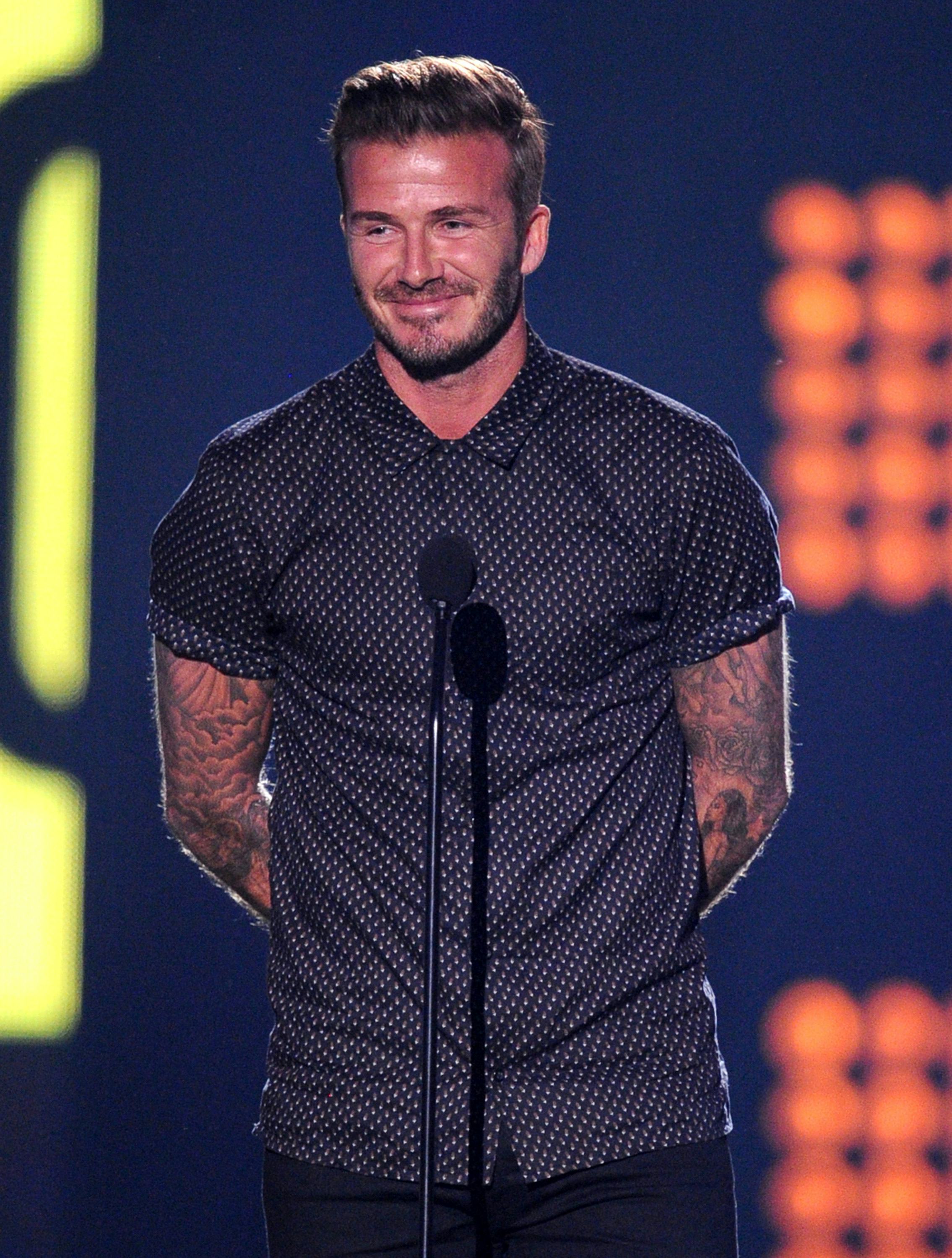 Let's take a quick gander at David Beckham's "okay" body for a sec, shall we?