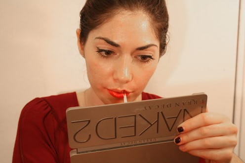 Kat von D's intense Studded Kiss Lipstick is literally packaged in a black studded tube, so I was prepared for an unapologetically vivid shade. However, I was still shocked by the heavily glittered, bronze Gothica shade. After wearing the lipstick around for an hour, I finally found myself falling for its rich, autumn-appropriate hue.