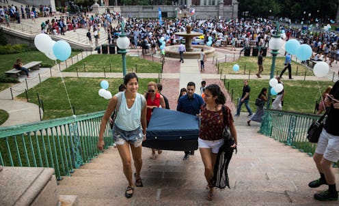 You're probably familiar with Sulkowicz's story by now. A brave senior in the class of 2015 at Columbia University’s undergraduate school, she's shared her sexual assault story with the world by vowing to carry her mattress around until her rapist leaves the school, either by choice or by force. Her project, titled "Mattress Performance/Carry That Weight" has been a visual and powerful reminder of the struggles that face rape victims on college campuses — for whomever needs reminding.