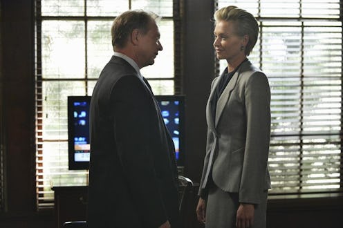 There are a lot of reasons to celebrate Scandal's return, and not all of them have to do with getting the chance to see Scott Foley shirtless again... although that's definitely a plus. Another season means casting shakeups — saying goodbye to old series regulars (RIP, Harrison) and meeting new faces. Now that we're all settled with Scandal Season 4's Lizzie Bear (Portia De Rossi) as the head of the RNC, my fingers are crossed that she decides to stick around for awhile. Because De Rossi's not just bringing new life into the Oval Office — she's also the very first person who has ever been able to give Cyrus Beene a run for his money.