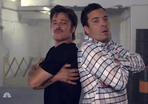 So we already knew that Brad Pitt is one of the most versatile, talented actors in the game right now. Between films like The Tree of Life, 12 Years a Slave, Inglourious Basterds, and Fury — and that's just from the past few years!) — Pitt's proven that time and time again. But who knew the dude was this versatile? In an appearance on The Tonight Show to promote his upcoming World War II film, Fury, Brad Pitt participated in a breakdance competition with host Jimmy Fallon, as part of a hilarious skit involving the two talking to each other using dance moves.