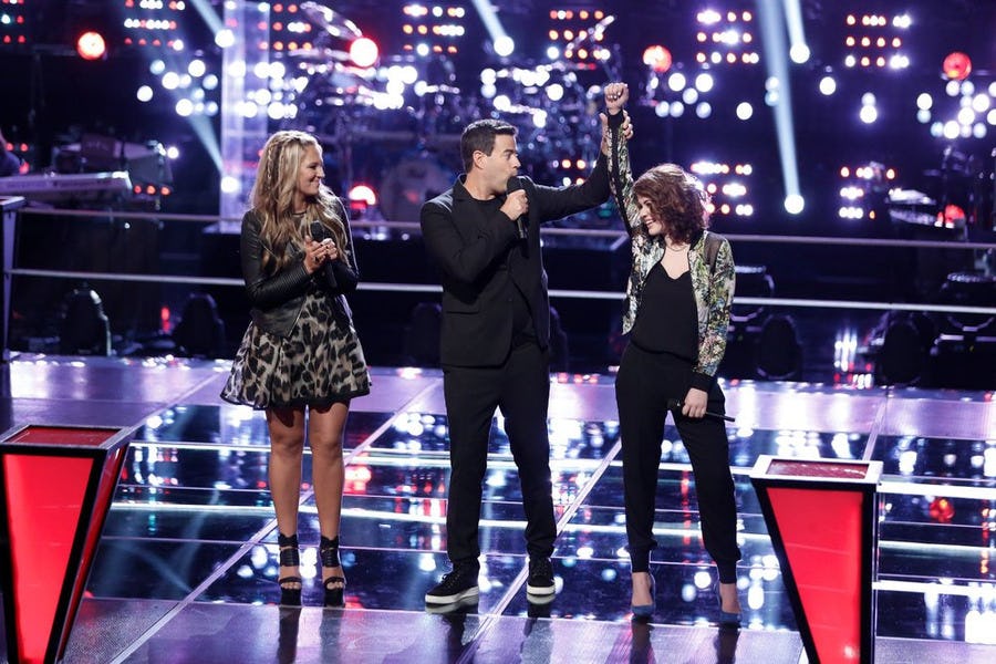 When the pair took the stage on Tuesday night, Reagan just blew the performance away. She was loose and comfortable with herself while Kensington, while her voice was totally incredible, was static in comparison and, at the risk of sounding harsh, boring. And the judges obviously noticed. Gwen and Pharrell complained that they still weren't over not having Reagan on their team and Adam basically told her that she was already a star. I mean, they did throw a handful of compliments Kensington's way regarding her powerful voice, but it was clear who the winner was before Blake even decided.