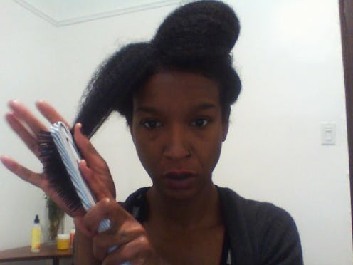 My hesitance to brush my afro was largely due to the fact that I was sure it would break my hair. In fact brushing natural hair is a popular detangling method that many kinky folks swear by. One of the best reasons to brush is that it saves time on those brutal detangling sessions. When I first took to a carefully chosen brush, I noticed that those annoying tangles that were previously impossible to get rid of came out fairly quickly — and without even a drop of frustration tears. Real talk though: The Brush can be your best friend or your worst enemy. Choosing the right brush and method will no doubt involve some trial and error — but it's worth it.