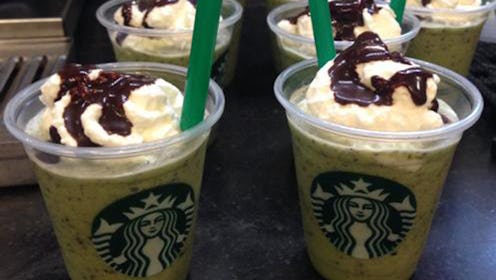 Now compare that to the dubious Starbucks Franken Frappuccino that just arrived on the scene. I mean, for one thing, it's green. Green. Beverages aren't supposed to be green. Green is for salad and iced Christmas tree cookies. What even is this thing?