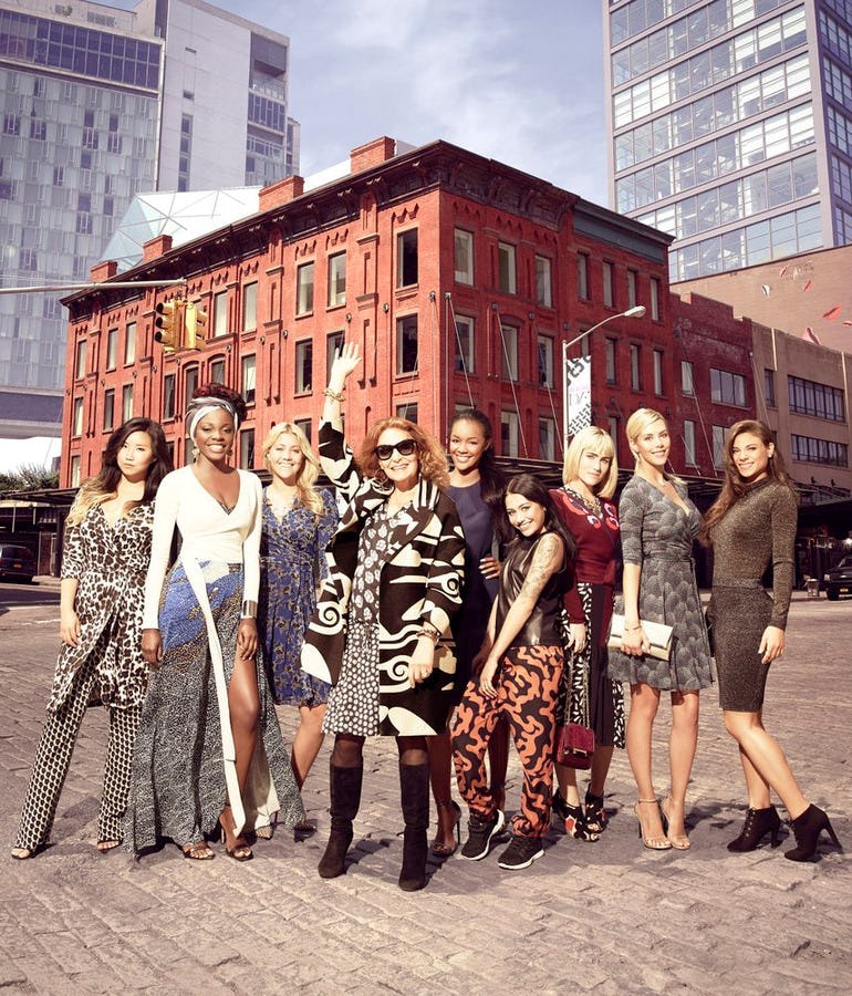 The E! Network's latest totally addictive creation, House of DVF, is a competition reality show/longform interview for a job as the Global Ambassador for the Diane von Furstenberg brand. A "DVF Girl" will be sent around the world to promote the Diane von Furstenberg brand, appear in ads, and host events. She'll be at every Fashion Week to make an appearance at the DVF runway, and she'll surely be updating her millions of Instagram followers about the latest print to come out of the DVF studio. Basically, it's a paid job that puts the PR in princess, because while it's a lot of pressure to always be promoting the brand with a smile, it's also a dream come true for these mostly entry level hopefuls... and for pretty much anyone who's dreamed of getting paid to wear and talk about expensive clothes.
