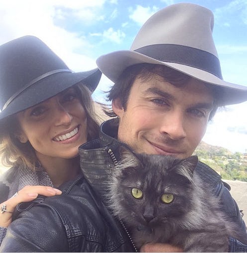 Consider them five pets and counting, because it seems like nothing will get in the way of vampiric and gorgeous couple Ian Somerhalder and Nikki Reed from adopting animals together. Along with a kitten, dogs, and a horse, Somerhalder and Reed are proud parents to yet another pet, a rescued cat from a shelter in Georgia. This is the third animal the pair have adopted together, meaning they've reached the animal parenting level of their relationship. Well, they've been there for a while considering the Noah's Ark they're creating, but they're definitely on some sort of serious track. Somerhalder posted a pic of the fluffy grey and black "newest addition to the family" on his Instagram and Twitter, and thanked Reed for finding her. Apparently, the cat was mislabeled "feral/not friendly" on the cage, which didn’t stop Reed from opening it to play and fall in love with her.