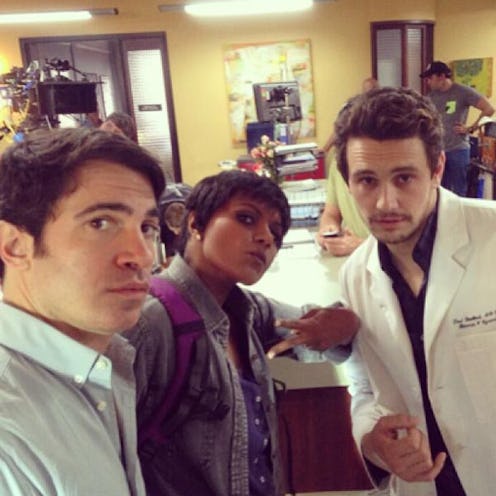 But then, Mindy gets a gallbladder infection and she's airlifted out of Haiti and back to New York. A pretty clever way to get her back to the office, I suppose. The best part about the premiere? JAMES FRANCO. More specifically, James Franco as the former model-turned-doctor (his inspiration was falling off a runway while high on E, into an 8-month-pregnant woman who worked for ad sales at In Style. Phenomenal). Mindy and Franco instantly become rivals because he is the new handsome doctor and Morgan has even started calling him Dr. L instead of Mindy. So harsh.