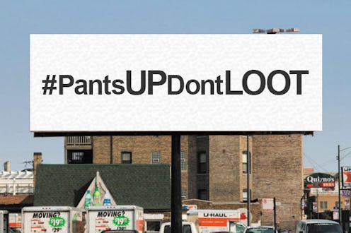 If you've been keeping track of the Ferguson protest movement, odds are you've already heard its signature phrase: "hands up, don't shoot." In the aftermath of the shooting death of 18-year-old Michael Brown in August, by Ferguson police officer Darren Wilson, countless people have taken to the streets to protest police violence, and assert the value of black lives. "Hands up, don't shoot" is a reflection of that, and it's been an essential rallying cry over the past few months. Darren Wilson supporters' gross "Pants Up, Don't Loot" billboard, on the other hand, is anything but.