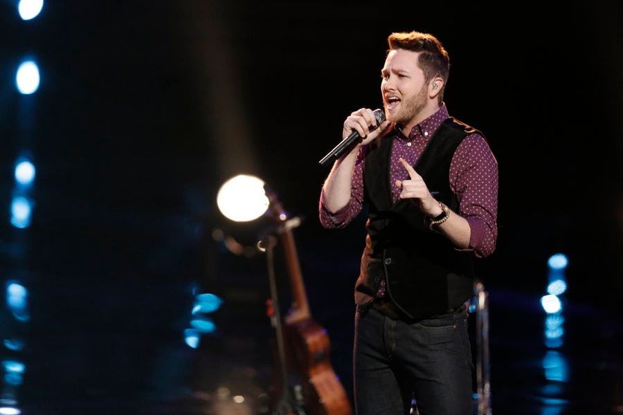 Luke Wade has been the man to beat on The Voice. He wiggled his way into our hearts with his emotional background story in The Blind Auditions, wowed throughout the heated Battle and Knockout Rounds, and made us all want to throw our bras on the stage (or at the TV) with his rendition of "Let's Get It On." He has been an example of perfection throughout his entire run on The Voice. Until now. Wade stumbled at the beginning of his performance of "Thinking Out Loud" in the Top 12, but recovered like a true professional and proved that he is The Voice.