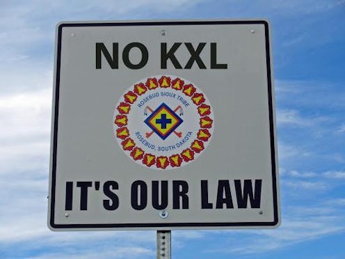 Basically, the proposed leg of the pipeline is slated to run through Native land in the Great Plains of South Dakota. Land belonging to the Rosebud Sioux, who according to tribe President Cyril Scott were not adequately consulted about the proposal before the House's vote to force its approval. As detailed in a post the tribe published on Facebook in late October, they'd applied for party status relating to the Keystone XL issue — basically, insisting the tribe had to be involved in the process, because they were resolutely against the pipeline's construction on their lands.