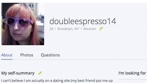 Of course, creating a vague, cliché-riddled profile doesn't mean you don't stand a chance at finding love — in fact, in the three hours after I mocked up this profile for this article, it received five messages from dudes intrigued by DoubleEspresso14's interest in "cupcakes" and "random stuff." Does this mean that clichés remain popular in the online dating world, even though we know better, because they telegraph a generic vibe of uncomplicated happiness and vulnerability that some people find deeply attractive? Or does it mean that "random stuff" is code for a sex act too foul to describe in this publication? We may never know, gentle reader. But I'd guess that it's probably the sex one.