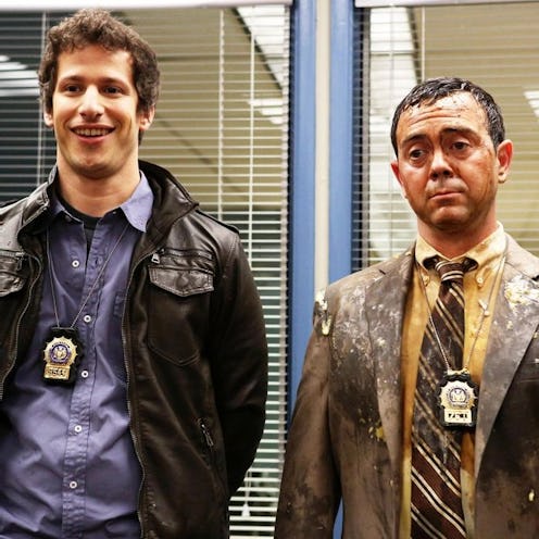 1. Andy Samberg. Okay, okay—hear me out. Samberg's Peralta, the precinct's best detective, can be a little annoying. The captain insists that he wear a tie, but Jake doesn't want to (because of course he doesn't want to), so he knots one around his belly! What?! When he finally does put on a tie, he wears it with a Speedo! Double what?!