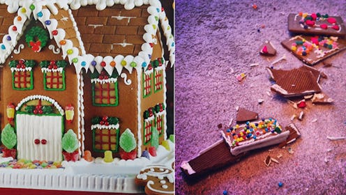Still, even in the face of these less-than-flawless attempts, we would-be gingerbread engineers remain optimistic. We see that cheerful photo of what the house is supposed to look like on the box and we're so high on the magic of the holiday season that we keep conveniently forgetting that we are mere mortals (unlike who I have to believe are wizards creating the perfect aspirational gingerbread houses in photos) and thus incapable of creating any kind of structure that can independently stand, let alone decorate it. But you know what? Watching your masterpiece fall apart is half the fun (the other half is, obviously, eating it). Just be sure this holiday season that when you endeavor to build a gingerbread house, you are prepared for all of these expectations to fall short of reality.