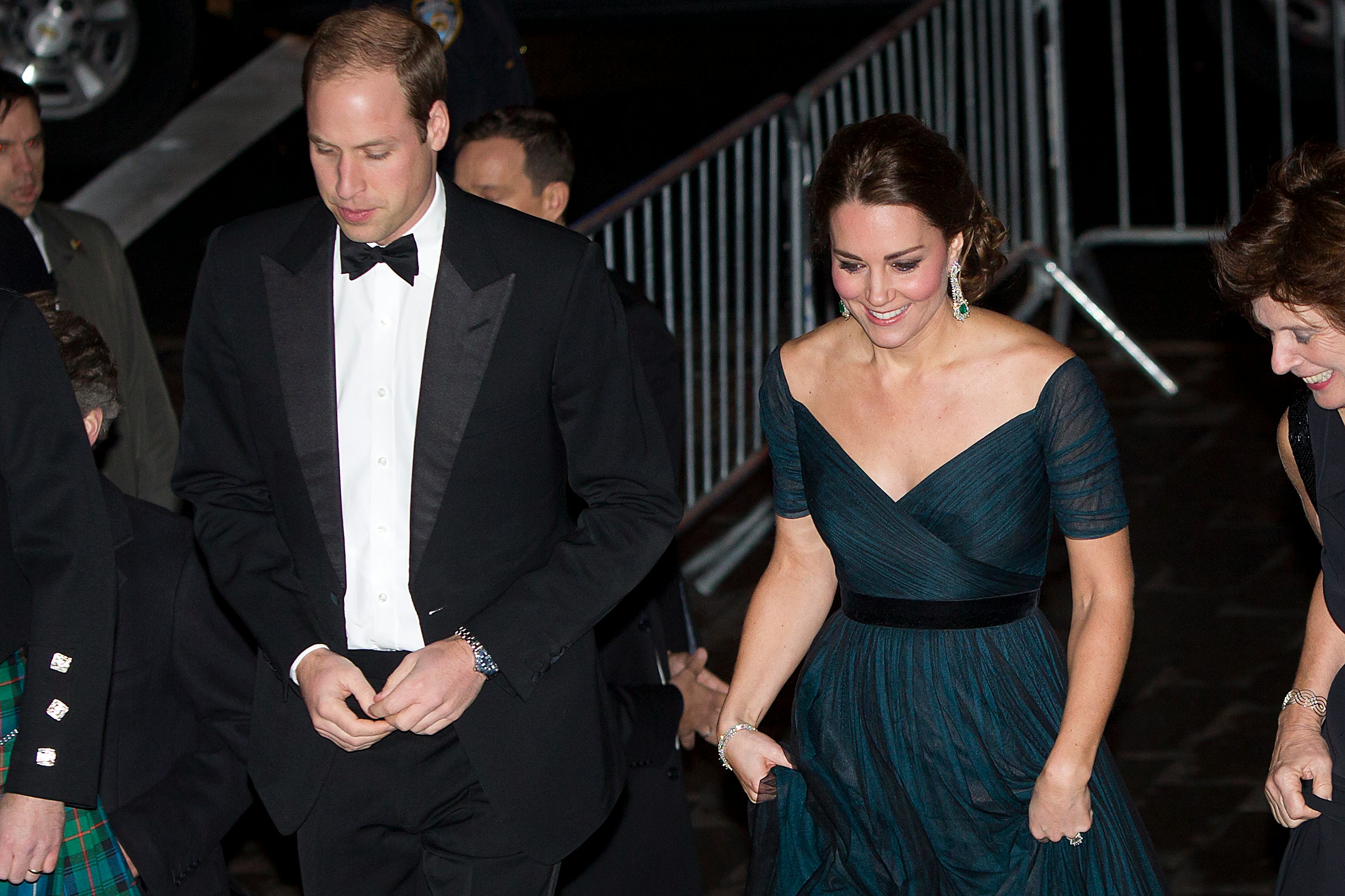 This elegantly draped Jenny Packham fits Kate Middleton like a dream and paired wonderfully with the up-do and diamond and emerald statement earrings she chose to wear it with. Why wouldn't the Duchess want to sport something she knows makes her feel gorgeous on her last night in the greatest city in the world (last one, I promise)?