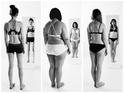 It should come as no surprise, then, that the women in her photographs are all quite different. Their range of sizes (in my estimation) is approximately 0 to 18 — an important, and necessary range, when you consider that issues in body image are not isolated to the plus-size community. Hating of the self extends far above and beyond any one size group, any gender, any community. Be it because of the media — because of the unrealistic but "aspirational" imagery we're presented with in the day-to-day — the majority of human beings experience difficulties in achieving positive self esteem, at some point in their lifetimes. And the mirror — the image staring back at you from afar — is the source of a lot of those difficulties.