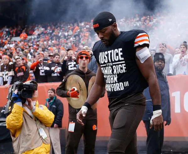 I understood there was going to be backlash, and that scared me, honestly. But deep down I felt like it was the right thing to do. If I was to run away from what I felt in my soul was the right thing to do, that would make me a coward, and I can’t live with that. God wouldn’t be able to put me where I am today, as far as I’ve come in life, if I was a coward. As you well know, and it’s well documented, I have a 2-year-old little boy. The same 2-year-old little boy that everyone said was cute when I jokingly threw him out of the house earlier this year. That little boy is my entire world. And the No. 1 reason for me wearing the T-shirt was the thought of what happened to Tamir Rice happening to my little Austin scares the living hell out of me. And my heart was broken for the parents of Tamir and John Crawford knowing they had to live that nightmare of a reality.