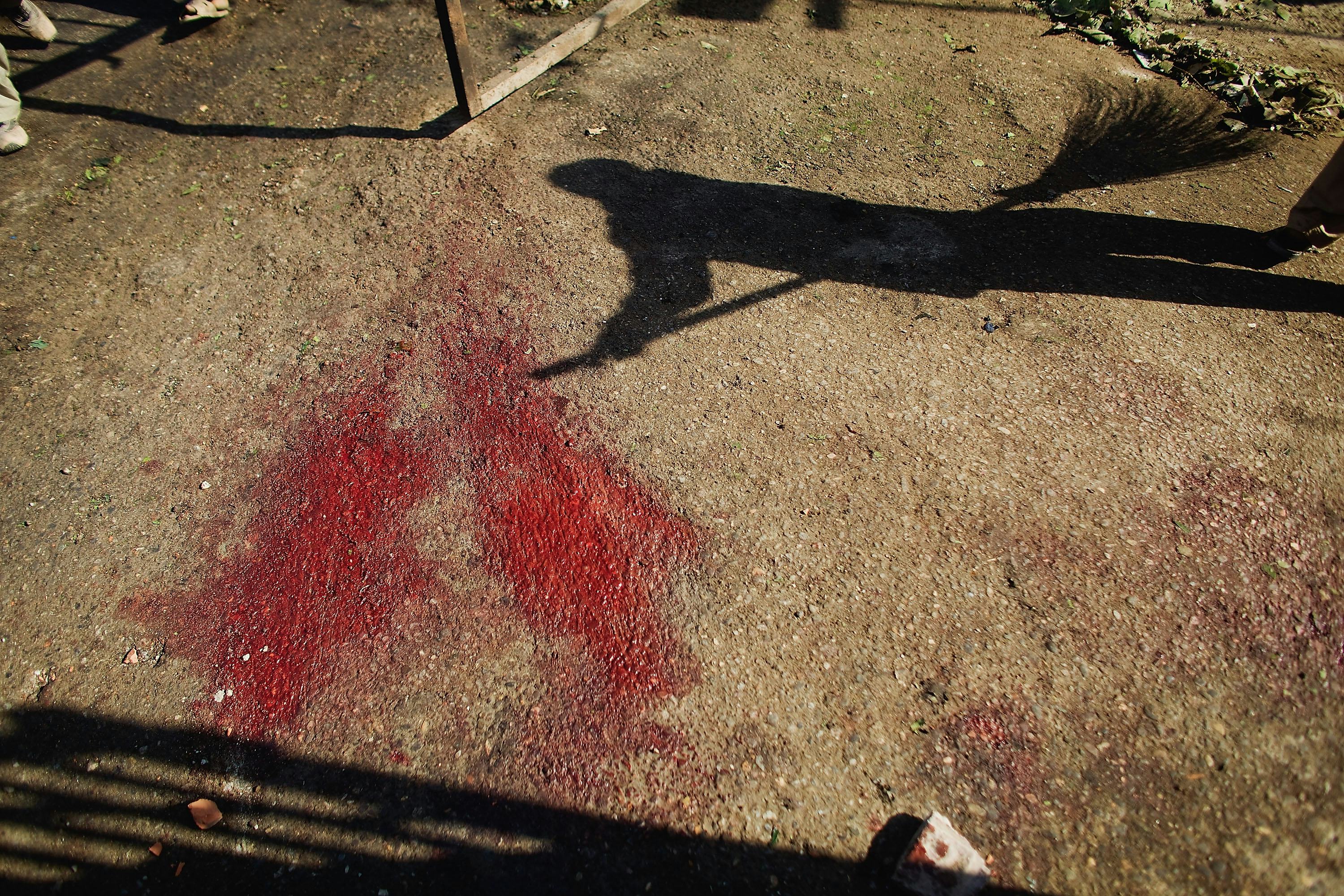 Some members of the media were allowed inside of the school Wednesday and reported on what was left behind in the carnage. BBC News' Mishal Husain wrote that blood stains spattered the floor of the auditorium, where a large portion of the attack took place. She also noted that a child's show was left behind on the auditorium steps.