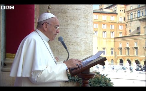 In his message, the Pope said to the tens of thousands of people gathered at St. Peter's Square, and the number of TV cameras broadcasting his speech around the world: