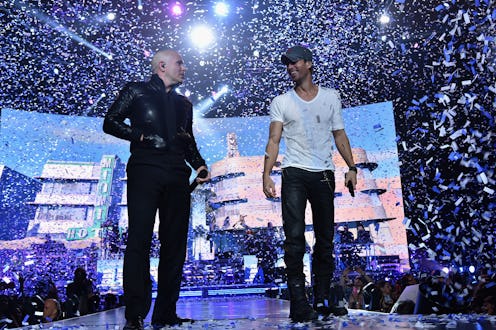 It's New Year's Eve and if you're not out partying, you're probably spending it with friends and family watching Dick Clark's New Year's Rockin' Eve and waiting for the ball drop. Or, if you're like me, you're spending it in a onesie watching Pitbull's New Years Revolution on Fox with a bottle of champagne. Sure, Dick Clark's Rockin' Eve is the classic NYE Party to watch, but the Pitbull party is the next best thing to watch because it's Pitbull and something outrageous/hilarious/downright insane is bound to happen. Well, we're in luck. Because not only did Pitbull's backup dancers The Most Bad Ones arrive to the party by driving through the Atlantic Ocean in Fiats, — seriously, that was downright ridiculous — but Mr. 305 just earned himself a key to his beloved city of Miami.