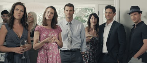When I chatted with Foley about the film, he explained how his 12-day shoot on a "shoestring budget" had him surrounded by family and friends. No, really — the cast features a few pairs of husband and wife actors: Foley's wife, Marika Dominczyk, plays his real-life brother-in-law Patrick Wilson's wife; Wilson's wife plays murdered wife Stacy; and star and producer James Carpinello's wife, Amy Acker, plays Foley's onscreen wife. Now try to wrap your head around that in addition to the crazy murder cover-up.