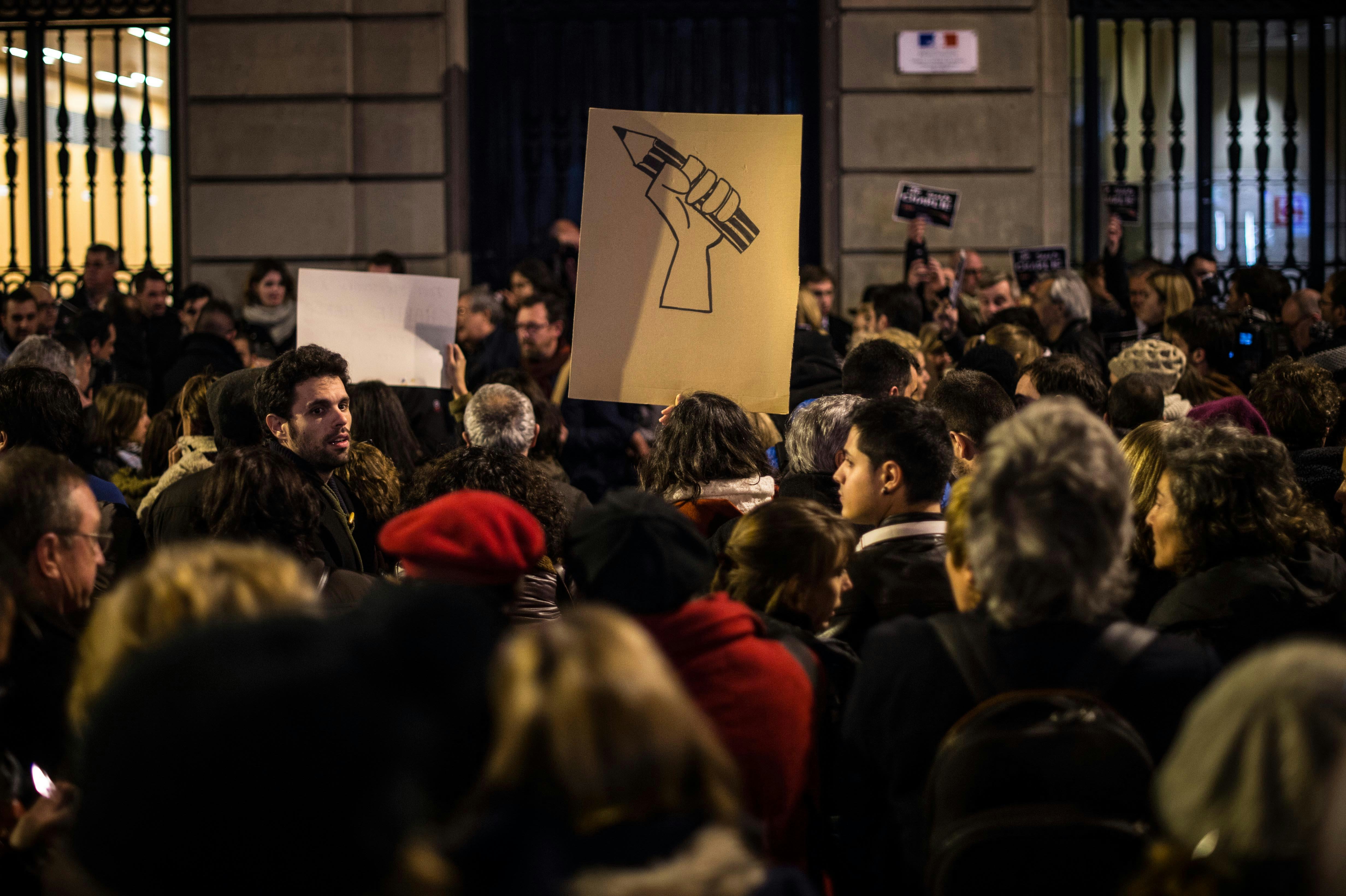Reassuringly, the response of the media hasn't been to scuttle away from the satire of Charlie Hebdo in fear; it's been to support them and republish their work, in defiance of any horrific attempt to silence it. If anything, the massacre seems to have backfired badly: what was possibly meant to inspire fear or caution among Western satirists has brought them out in angry, grieving droves on Twitter. People are flocking to Paris's Place de la Republique as I write, to hold up pens and pencils in solidarity.