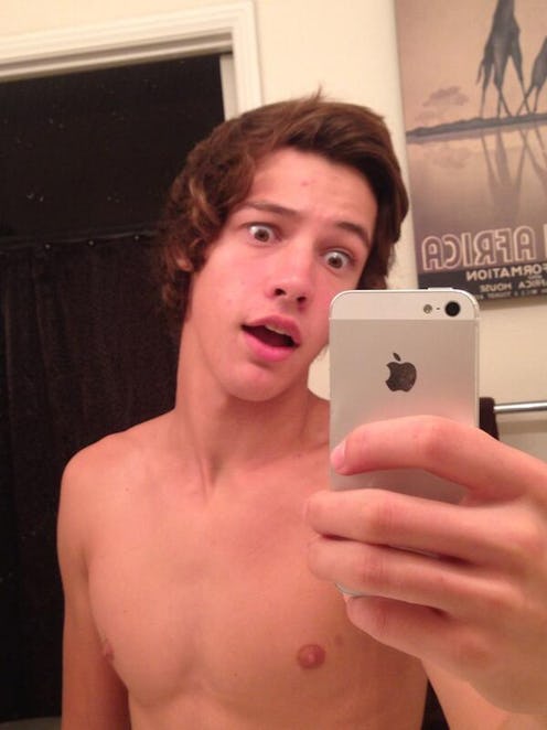 So why is he famous? The 18-year-old from Chino Hills, Calif., (according to his Tumblr) seems to be a normal teen, his only notable trait a set of abs that make his fans' tears a little more understandable. But he appears to have achieved most of his fame on the social network Vine, accumulating over 755,000 followers, which has, in turn, translated to nearly 200,000 Twitter followers. (He also has a bevy of famous Vine friends, like Brent Rivera and Matthew Espinosa.) And though his appeal is clear (Dallas is that key combination of adorable, non-threatening, and goofy that attracts the teen demographic), his videos are nothing extraordinary: