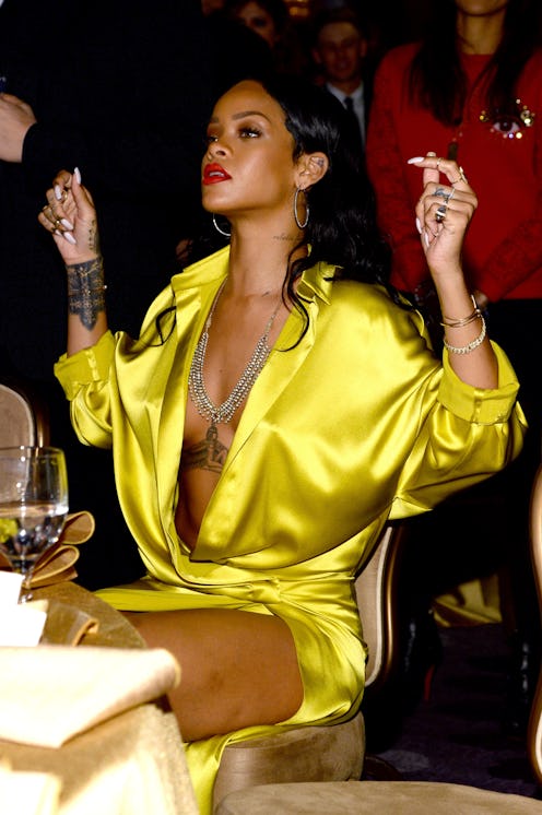 Hot on the heels of reportedly ringing in the New Year at the same club in St. Barts, there's a DIVINE new rumor about yacht king Leonardo DiCaprio and Instagram queen Rihanna: The two may or may not have canoodled with one another at a Playboy Mansion bash last weekend. HUBBA HUBBA. If 2015 is the Year of RiDi, I am HERE FOR IT. According to TMZ’s "spies", DiCaprio and Rihanna were allegedly spotted “gettin’ super steamy and even swapping spit” (normally, I'd be disgusted by that turn of phrase, but I'll make an exception. Because Rihanna and Leo DiCaprio) at the Playboy Mansion. A friend of DiCaprio's says the smoochin’ “didn’t happen,” BUT two unnamed sources who attended the party at Hugh Hefner's house told TMZ that the smoochin’ totally happened. If someone could get Hef on the line, that'd be awesome. Would love to hear his take.