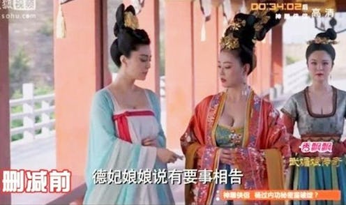 The Empress of China, starring popular Chinese actress Fan Bingbing as the Tang dynasty ruler Wu Zetian, originally aired in December, but was abruptly yanked off the air due to "technical reasons," according to the state-run Xinhua news agency. A week later, the show returned to the air, except something was a little different. Every shot of Wu and the ladies in her court were not-so-subtly cropped above the chest area. So, essentially, every single frame was an awkward close-up shot of the actors.