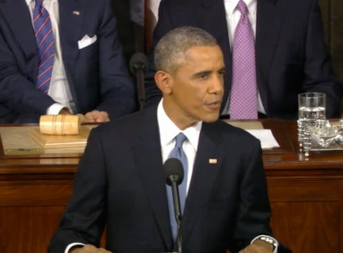 Hey, being under the spotlight is hard sometimes. But rest assured, I don't think he's particularly sweating what people think of his look at this instant — between equal pay, the Cuban embargo, international terrorism, immigration and internet security, its fair to say he's got plenty of better things on his mind during his sixth State of the Union address.