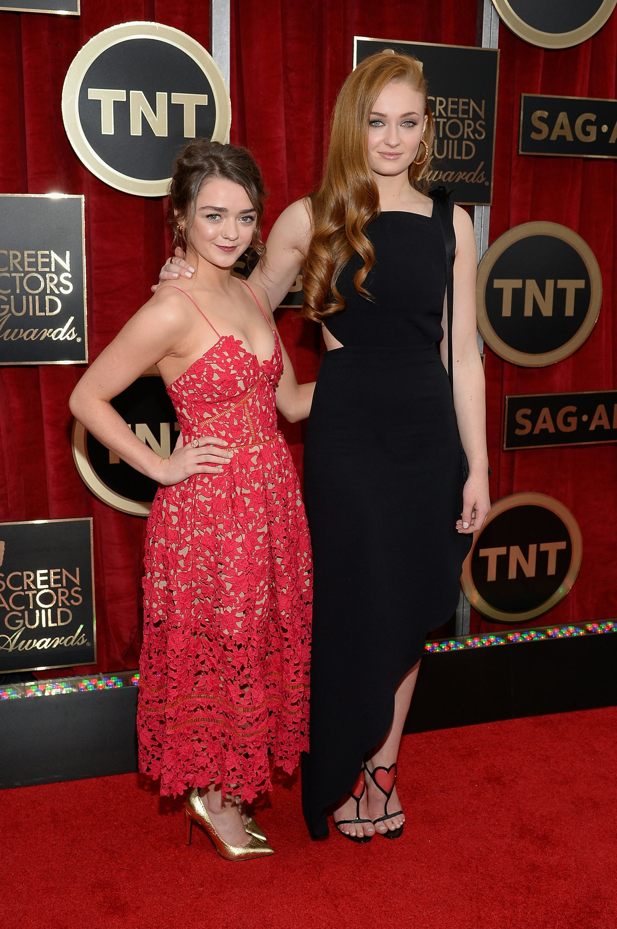 Okay, so maybe the Westerosi clan didn't roll onto the red carpet in character, but they still pulled out all the stops, which seems wise given that Game of Thrones is up for the "Outstanding Performance by an Ensemble in a Drama Series" award tonight and all eyes are on the show's biggest stars. Every single cast member, from Maisie Williams to Gwyndoline Christie, knocked it out of the park at the 2015 Screen Actors Guild awards. Check out the looks below.