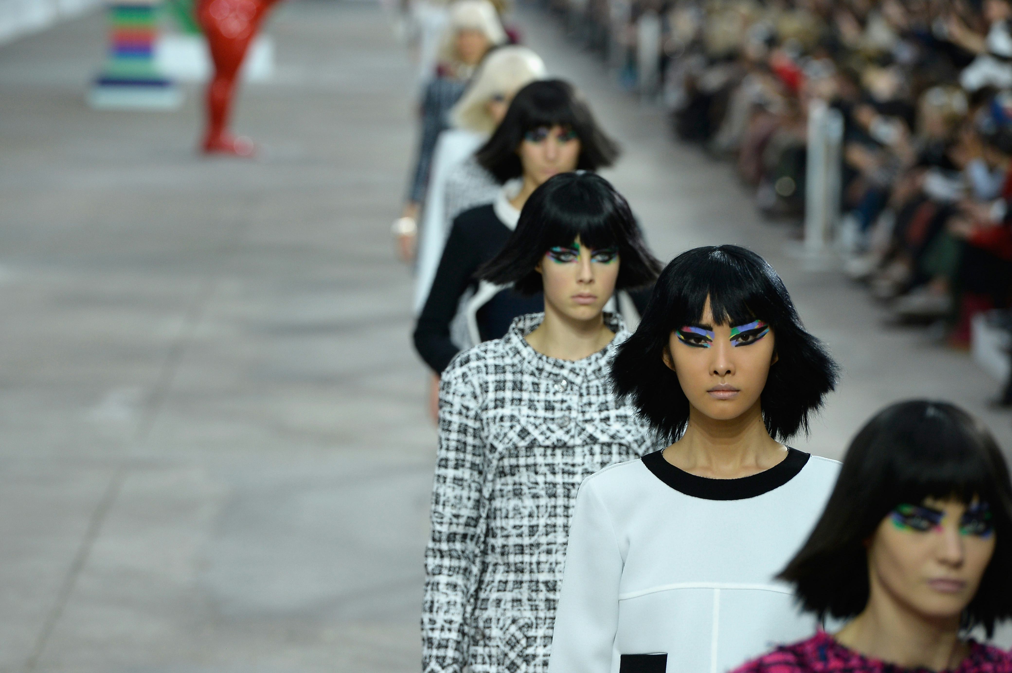 I sincerely hope you all heeded my warning to stay home from work today and watch the Chanel show, because, people, it was an extravaganza. An irreverent art show designed to make art snobs uncomfortable. A colorful collection inspired by vintage paint swatches. Also, THERE WAS A CHANEL NO. 5 ROBOT. In any other context, I'd be making it all up, but this is Chanel, and it's better than fiction.