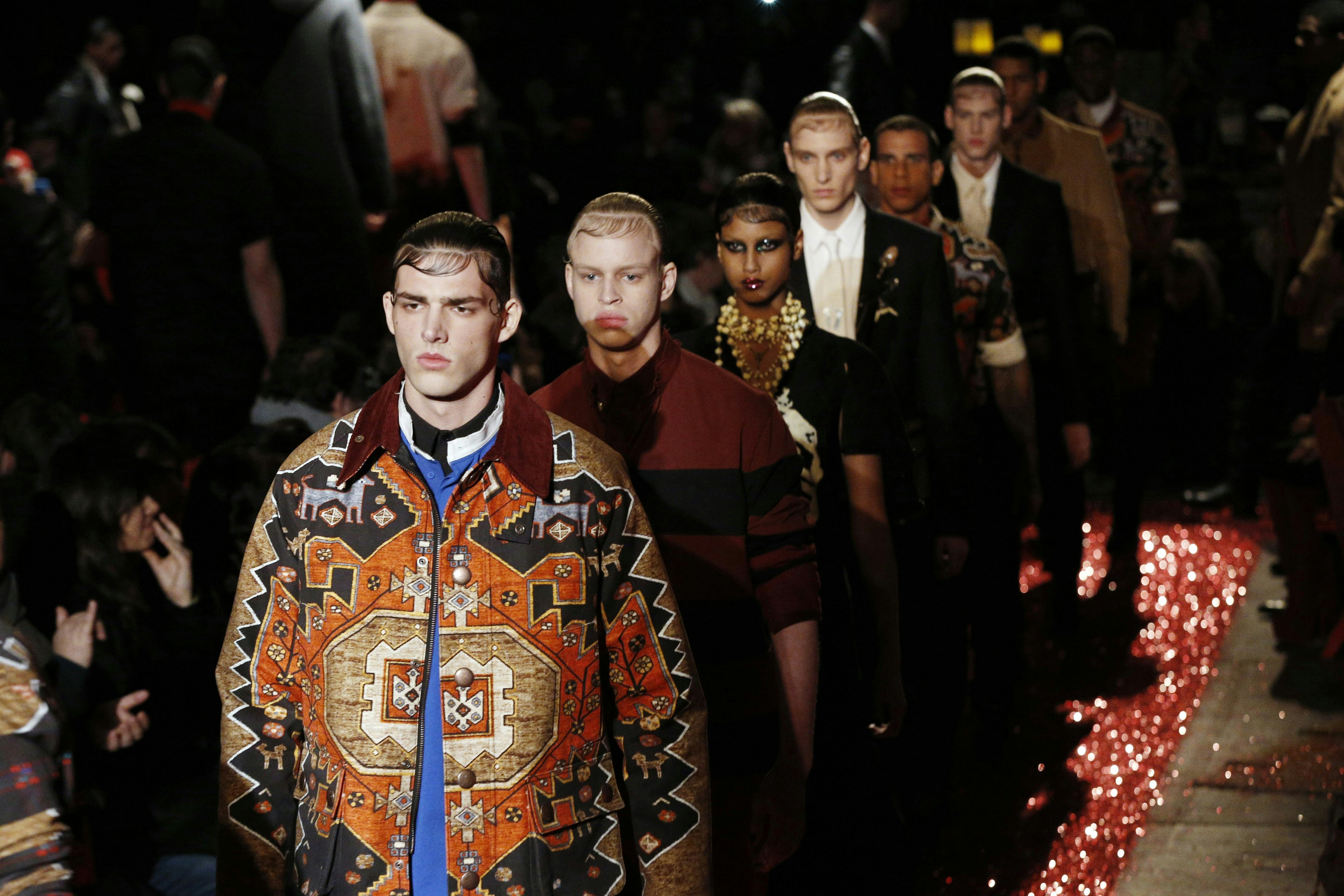 You may have seen some weird things go down the runway in your day if you're even remotely interested in fashion. Even if you don't care about fashion at all, the most shocking runway antics usually make headlines because, well, they're shocking. And if you haven't already noticed from your Facebook feeds, people tend to have something to say about that kind of stuff. But even if you think you've seen it all (and that includes the now-infamous Rick Owens full-frontal nudity show), I can guarantee you haven't seen anything as bizarre as Givenchy's menswear show. I'm talking the hair and makeup, specifically.